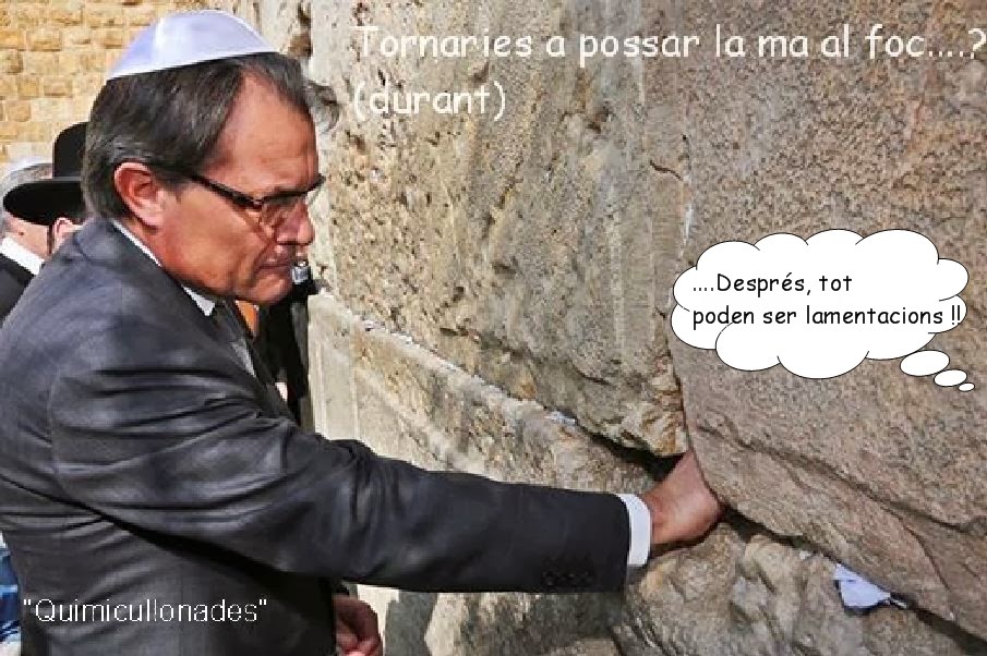 Un dia li preguntare al President Mas si va trobar un billet de 500 euros, ja que els jueus tot ho amaguen a sota una rajola. Ves a sapiguer oi? Igual 'el mur' es 'La Caxa' dels jueus, pero sense comisions ni gaites.